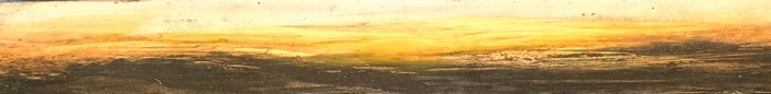 Feuilletant un de ses catalogues, parcourant son site internet, les reproductions de petit format – dont les tons affadis ne rendent pas justice aux œuvres – me rappellent une impression d'abord physique devant une peinture aux tons puissants mais sans agressivité, quiète, pénétrante et d'une intensité rare. La composition est simple : une ligne sépare l'espace, faisant l'horizon profond, sans fin peut-être, troué seulement par l'éclat sans brûlure d'un soleil qui tantôt pointe à peine et tantôt exulte et sature le ciel. Impression aussi d'une vision primordiale, séparation génésiaque d'un ciel colonisé par l'éruption calme et majestueuse du soleil d'avec l'océan, calme et noir, qui en absorbe le reflet.